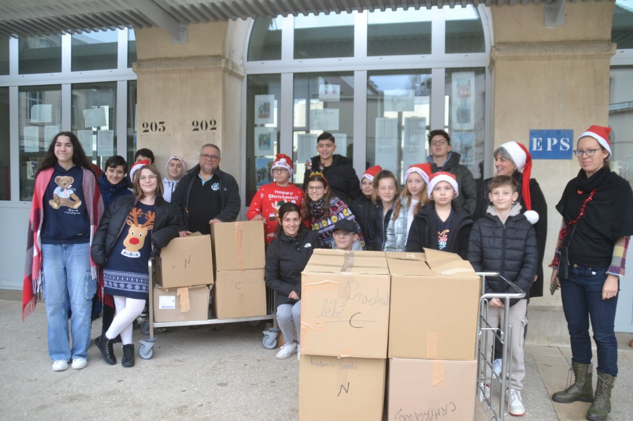 Une mobilisation collective qui s’est traduite par la remise de 291 kg de produits alimentaires, d’hygiène ou de puériculture au profit de l’Epicerie vendredi matin dans la cour du collège.