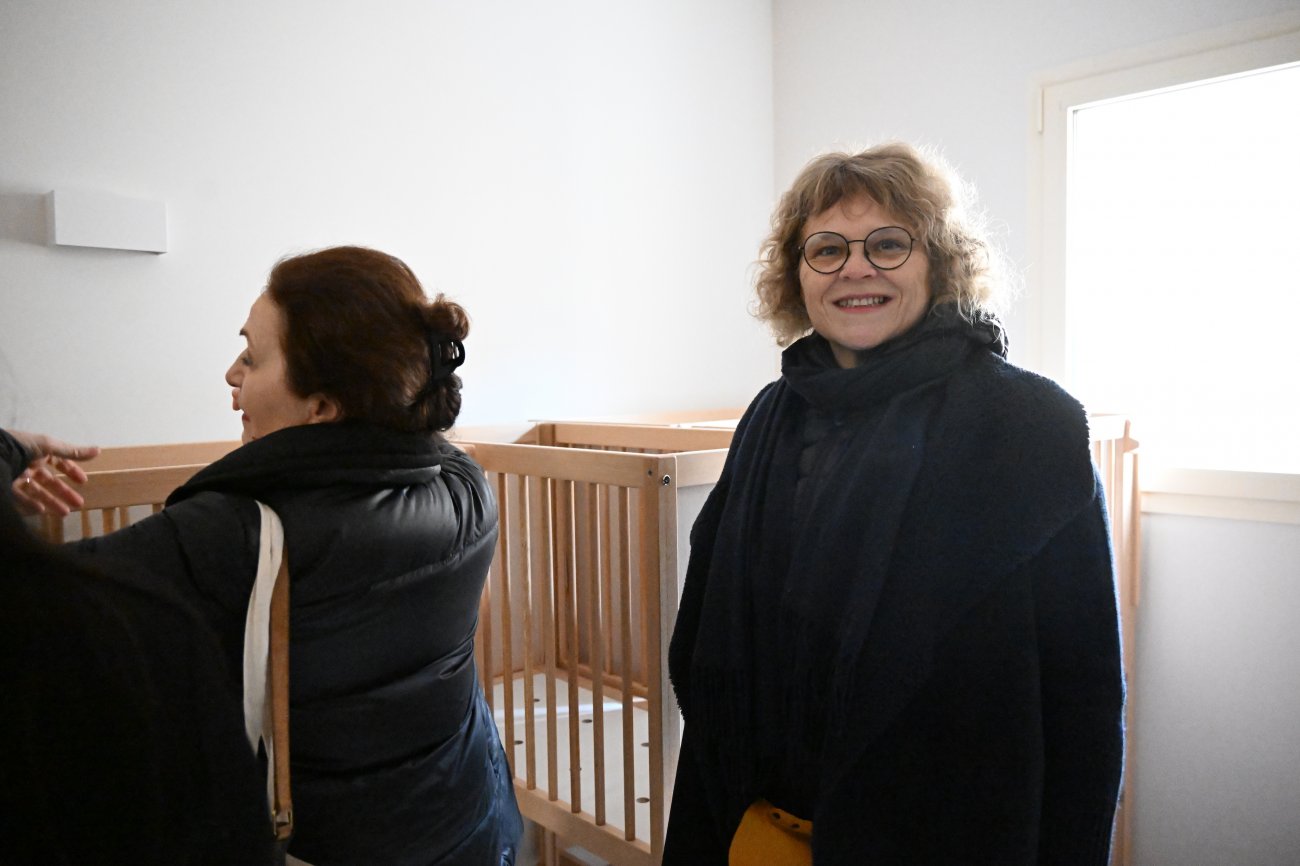 Présidente de la CNAF depuis 2018, Isabelle Sancerini sait de quoi elle parle. «Ce qui me frappe, ce sont la grandeur des espaces dans cette écolo-crèche. C’est très important, car ils vont permettre aux petits d’avoir des espaces pour leur développement. Cette structure a été bien pensée et bien conçue, aussi, pour la qualité de vie et de travail des personnels. Car c’est bien avec des crèches comme celle-ci, au Creusot, que l’on peut conserver les personnels. C’est vraiment un beau projet d’entreprise. Et c’est aussi un outil pour le projet pédagogique. Favoriser les accès à l’extérieur, pour les repas, les siestes, quand il fait beau évidemment, c’est essentiel et extrêmement important. Les études montrent en effet que les enfants sont moins malades