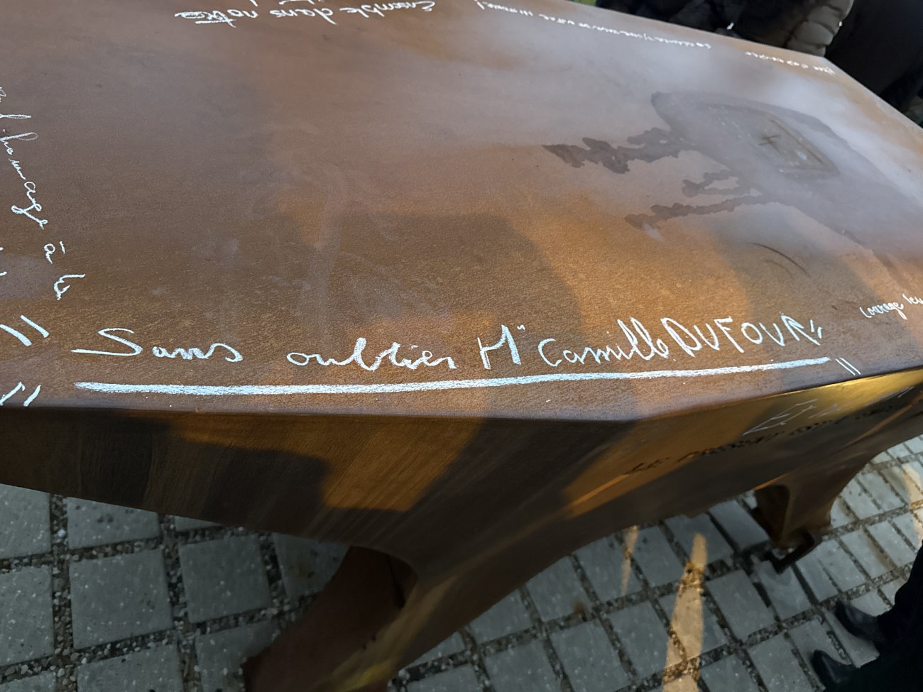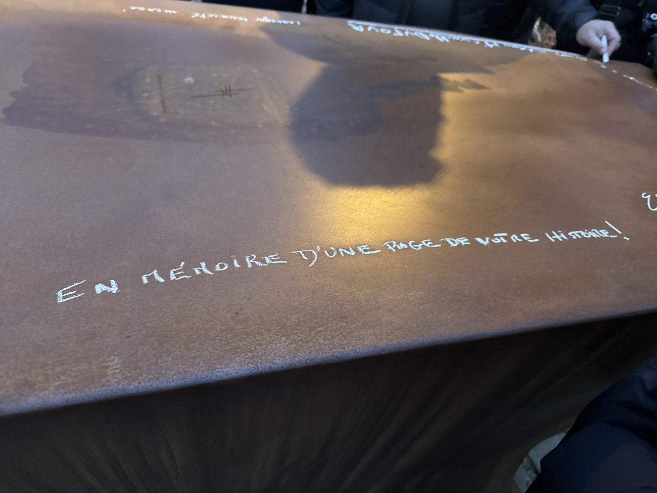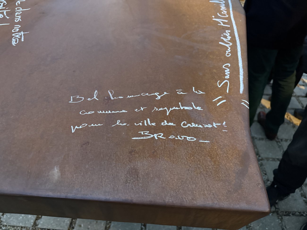 Il était temps pour lui, le Maire et quelques autres, d’écrire à la craie des messages sur l’enclume. «En mémoire d’une page de notre histoire» a sobrement écrit David Marti.