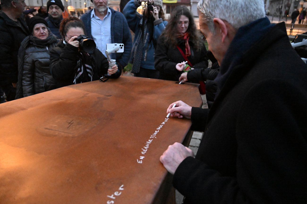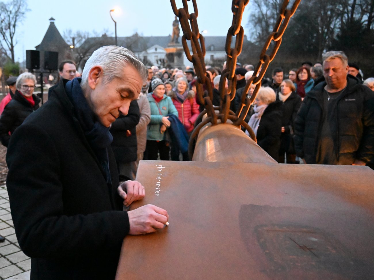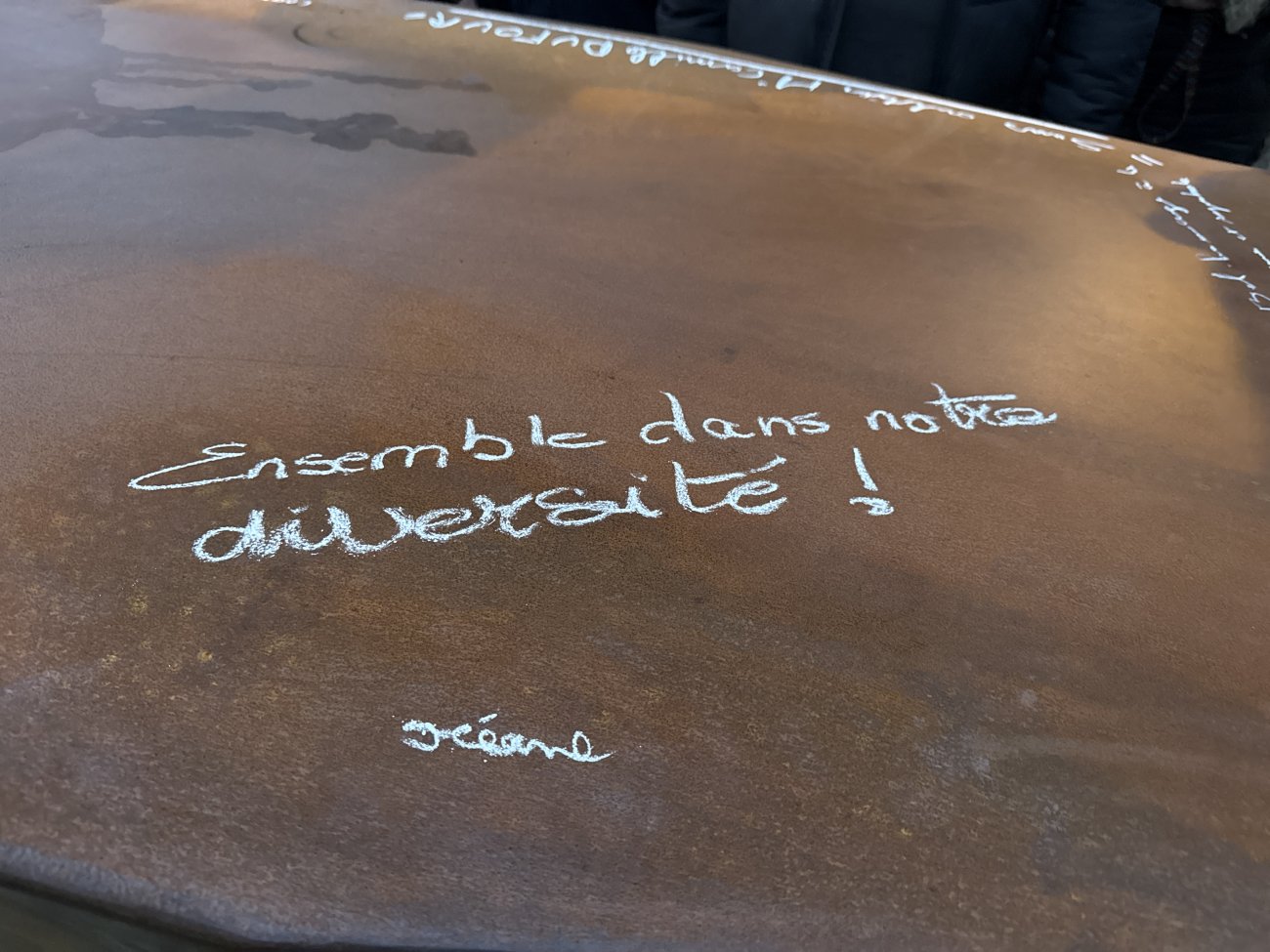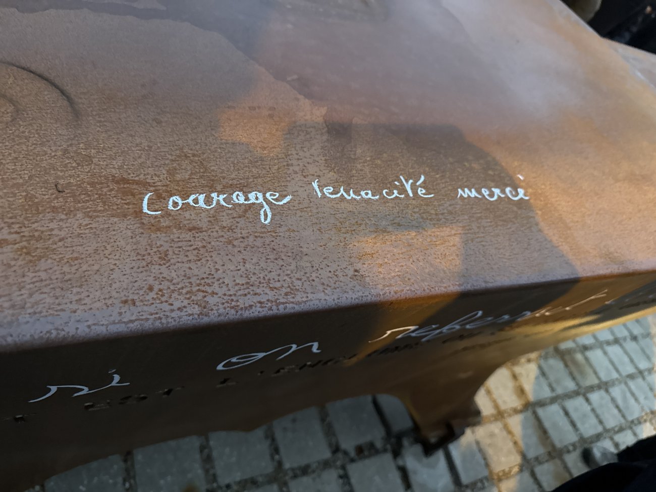 Il était temps pour lui, le Maire et quelques autres, d’écrire à la craie des messages sur l’enclume. «En mémoire d’une page de notre histoire» a sobrement écrit David Marti.