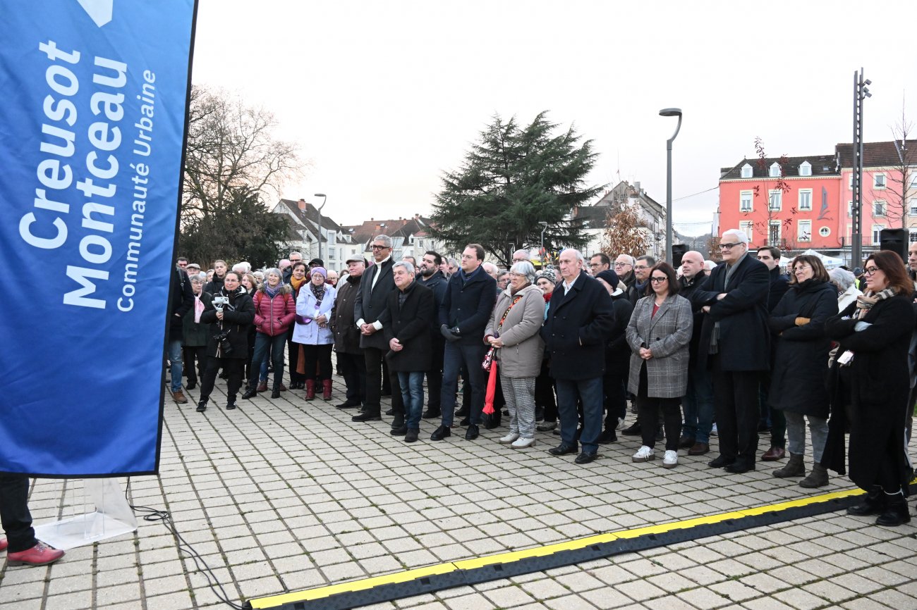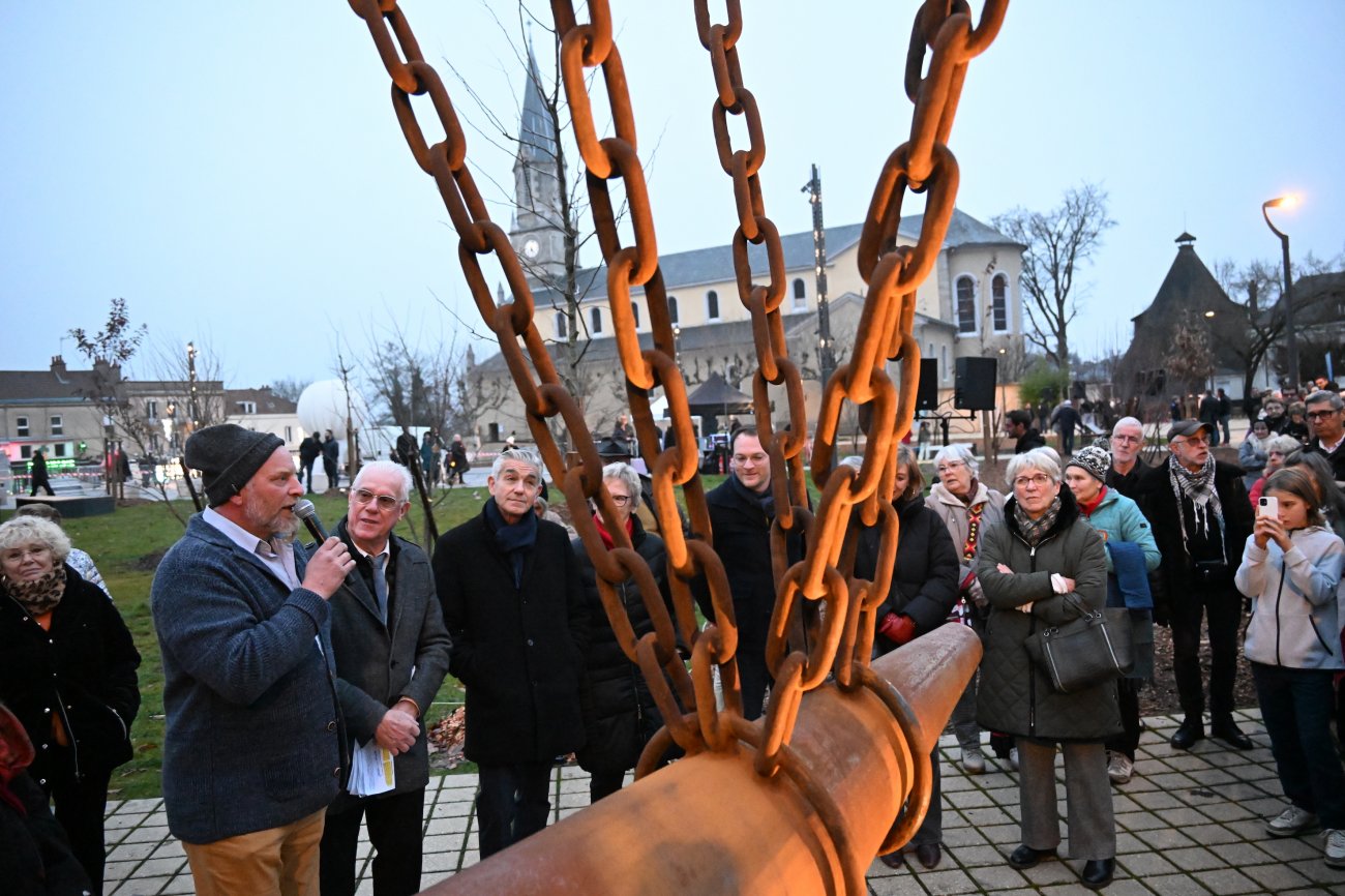 Il parla ensuite de l’enclume, l’œuvre monumentale, pour affirmer : « Elle est là pour rappeler que le Creusot ne se construit pas sans se rappeler… Notre histoire est un socle. La place est un lieu où l’on se souvient, où l’on avance. »