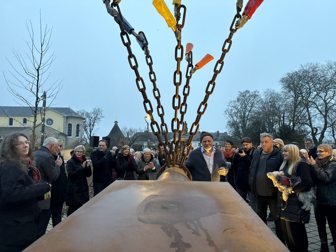 Le temps pour les enfants du conseil municipal jeunes de dévoiler la plaque, de planter un érable, et c’est l’enclume qui a été présentée par son créateur. Il a dit sa volonté d’avoir voulu rendre hommage à ceux qui avaient porté la commune et souligné que les pavés installés sous l’enclume symbolisent le «soulèvement des ouvriers».