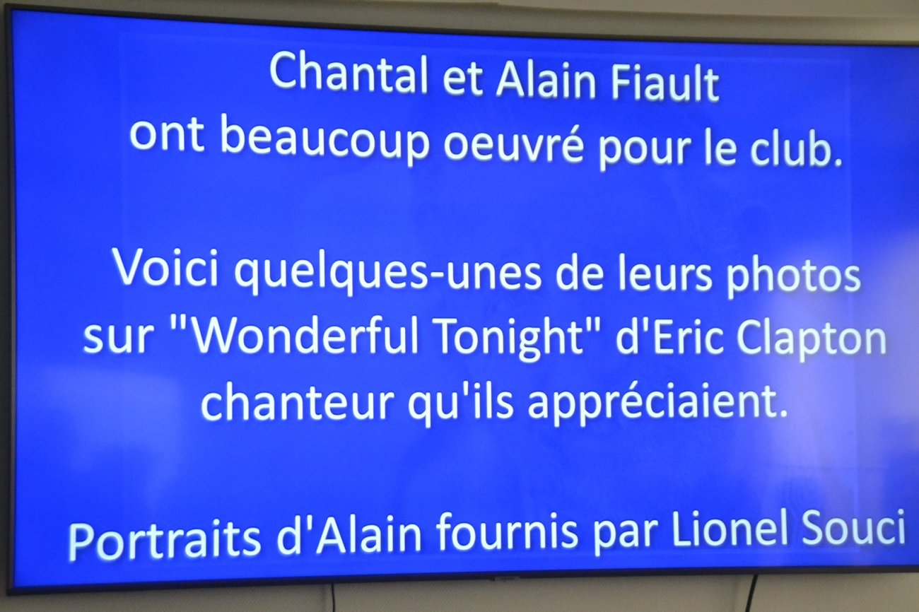 Pourquoi faire de longs discours, quand il suffit d’admirer une sélection de belles photos d’Alain sur écran géant et sur une musique d’Eric Clapton. On se doute bien que le choix a été difficile parmi les centaines qu’il a prises.