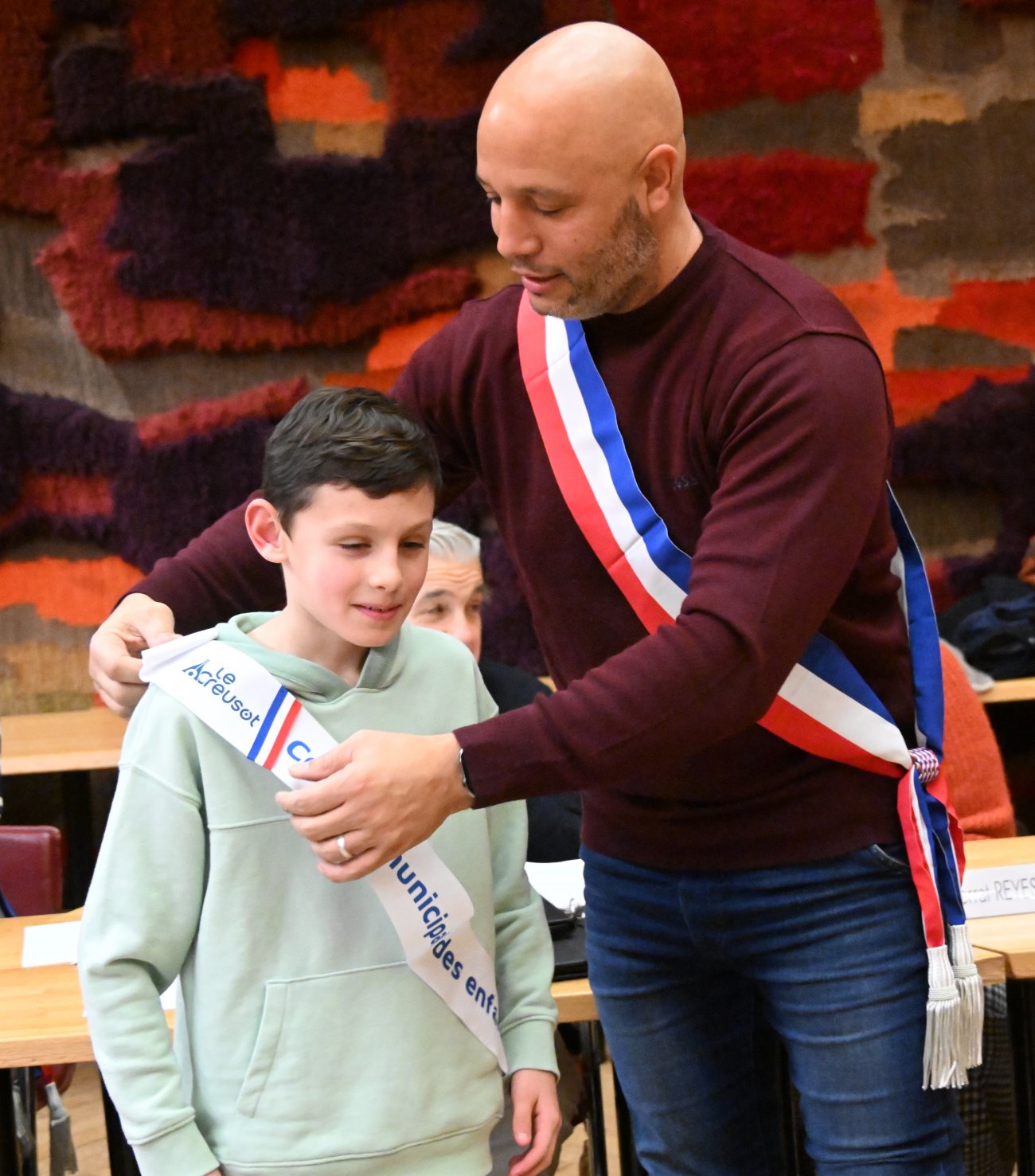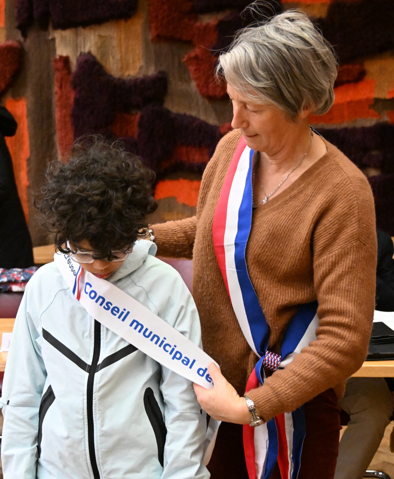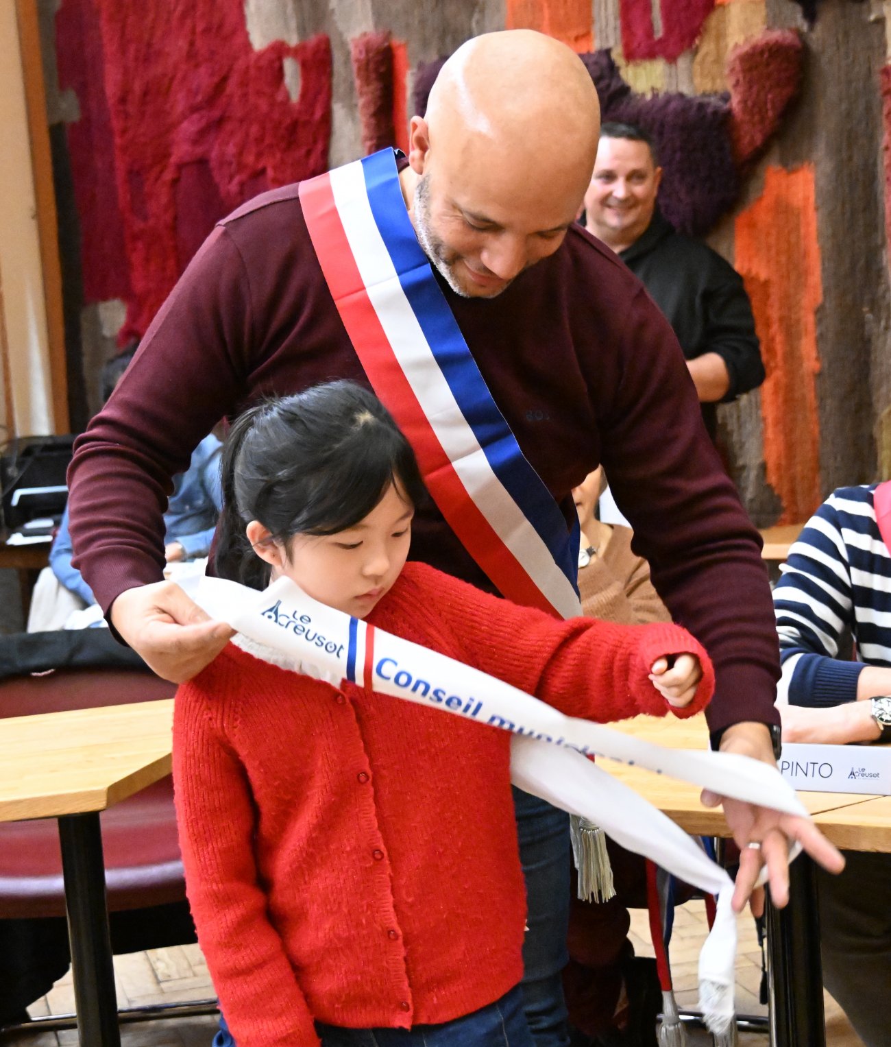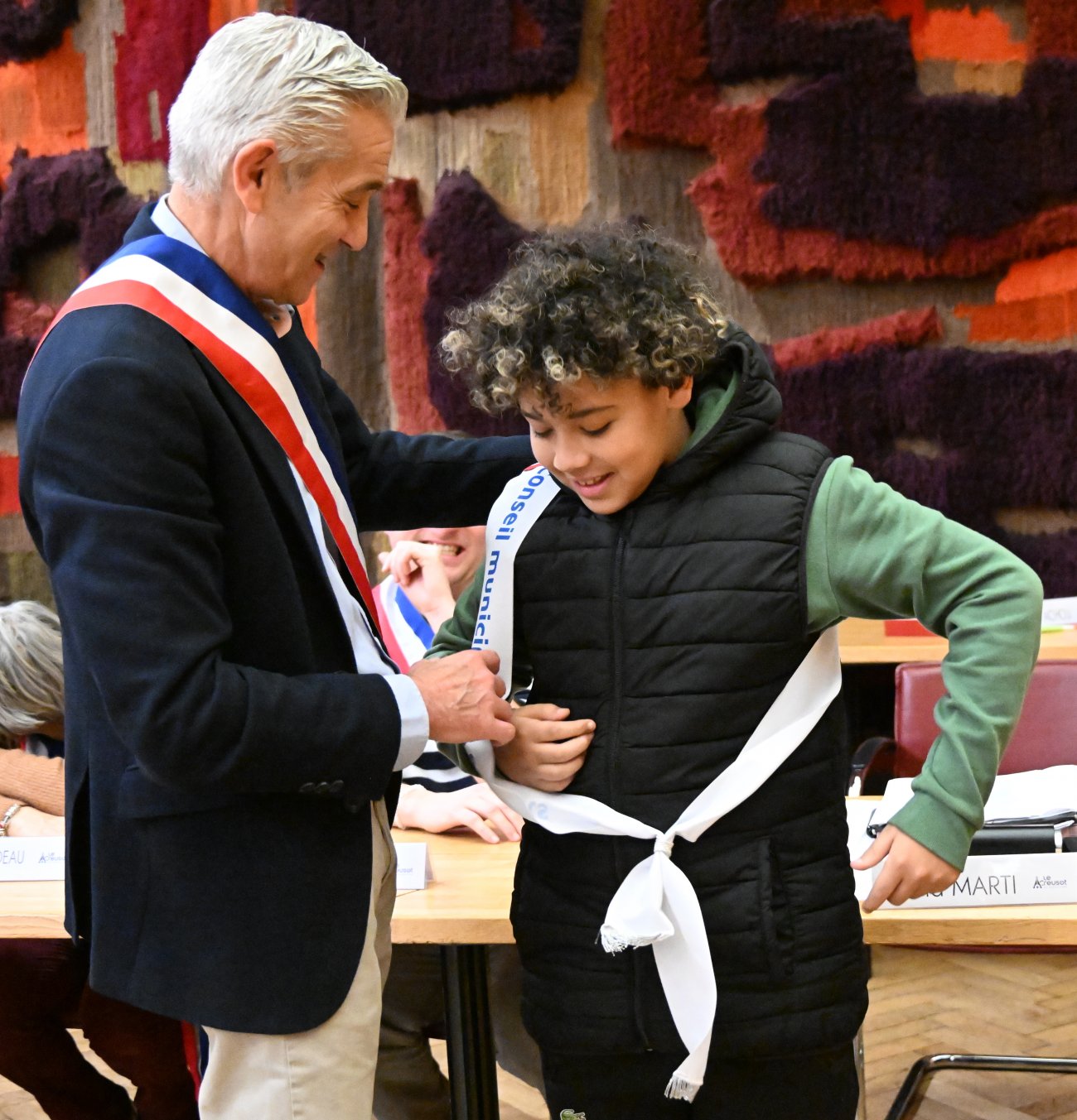 Il était alors temps de procéder très officiellement à l'installation du nouveau conseil municipal des jeunes, avec les remises des écharpes.