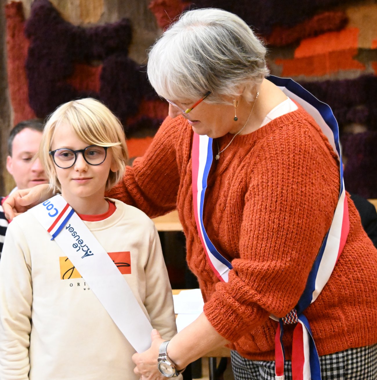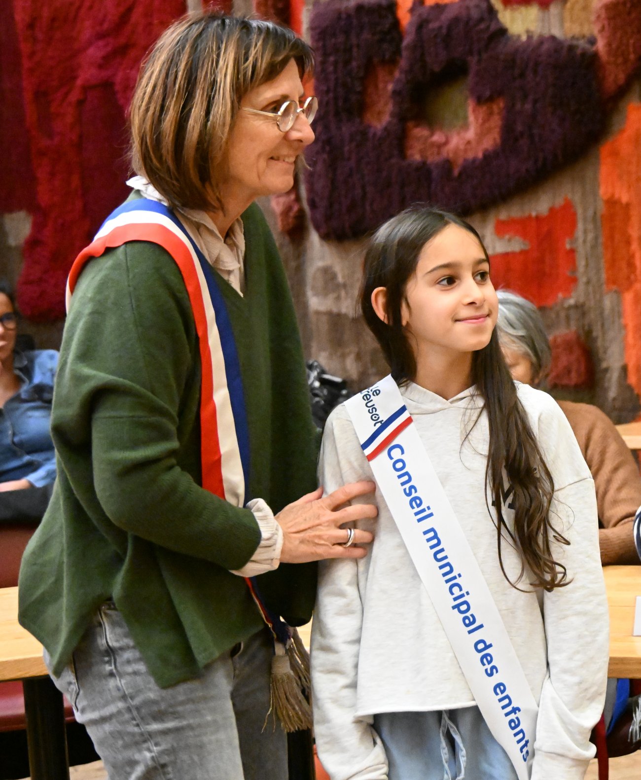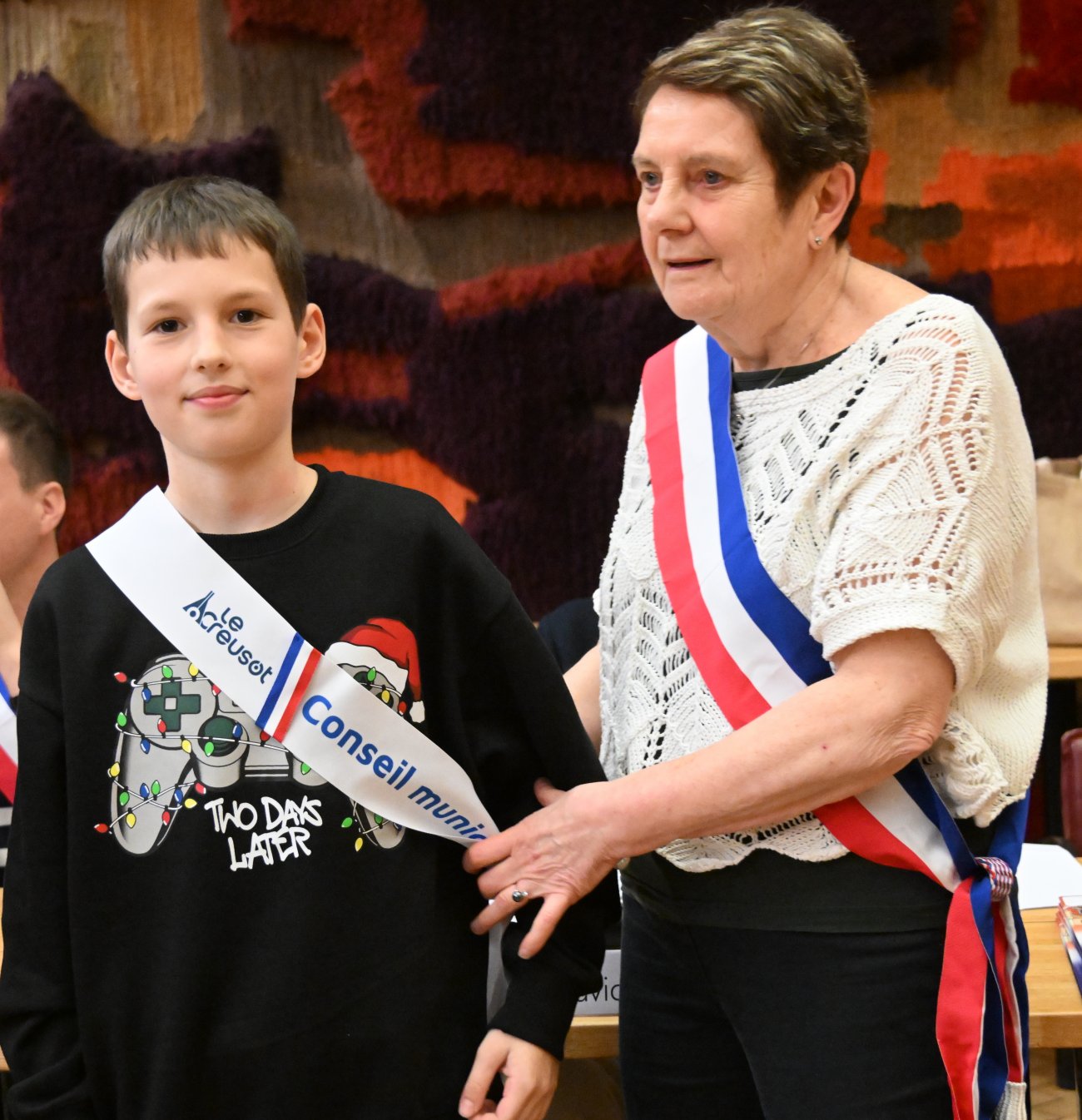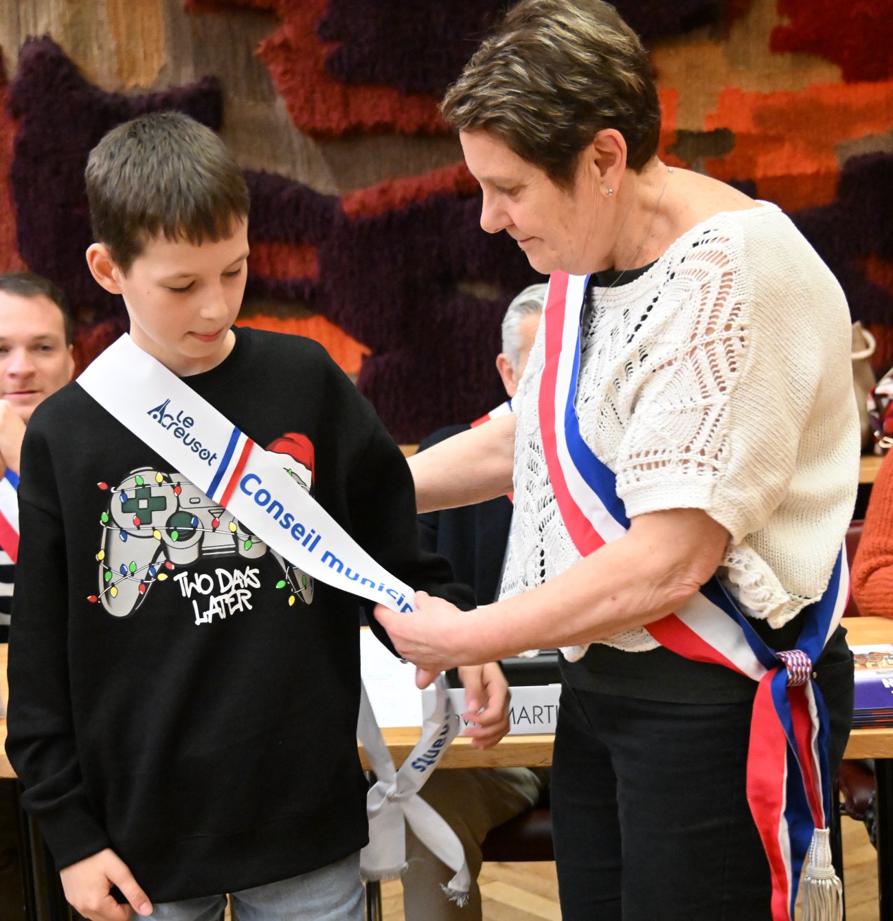 Il était alors temps de procéder très officiellement à l'installation du nouveau conseil municipal des jeunes, avec les remises des écharpes.