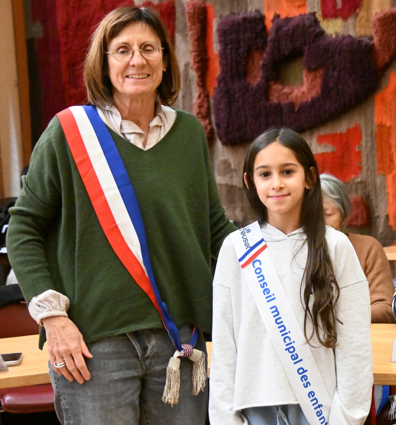 Le Maire ne manquant pas de rappeler : «Cette année, il y a la parité dans chaque école». Une fille et un garçon ont été élus. Interrogés, les jeunes élus ont répondu que la devise républicaine «Liberté, égalité, fraternité», est installé au fronton de chaque Mairie. Au Creusot, elle avait été officiellement installée le 14 juillet 1989, pour marqués le 200ème anniversaire de la Révolution française.