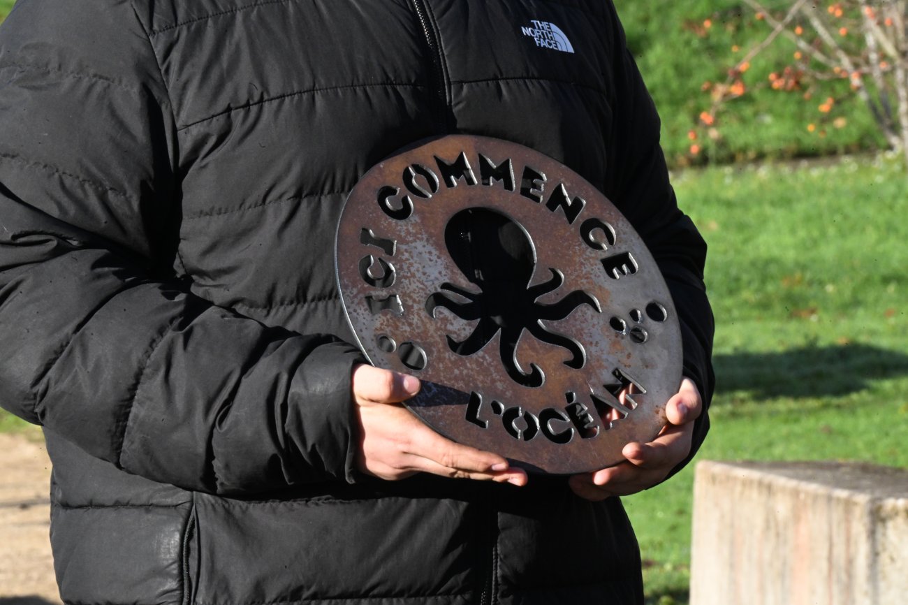 On notera aussi cette plaque posée non loin de l’olivier pour souligner que les déchets qui partent du lycée terminent dans l’océan… Tout les déchets. Une deuxième place a été symboliquement remise à David Marti. Les deux plaques ont bien évidemment été réalisées au lycée.