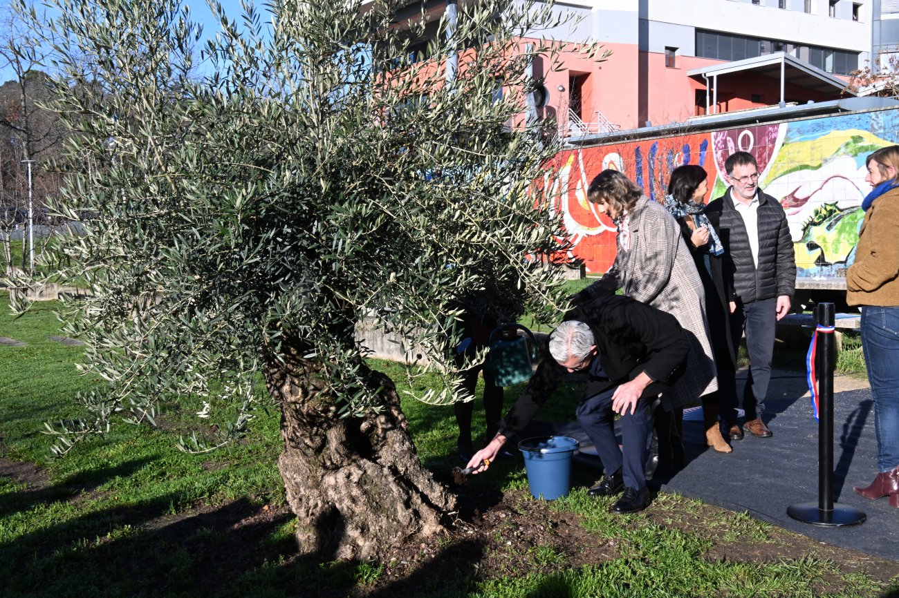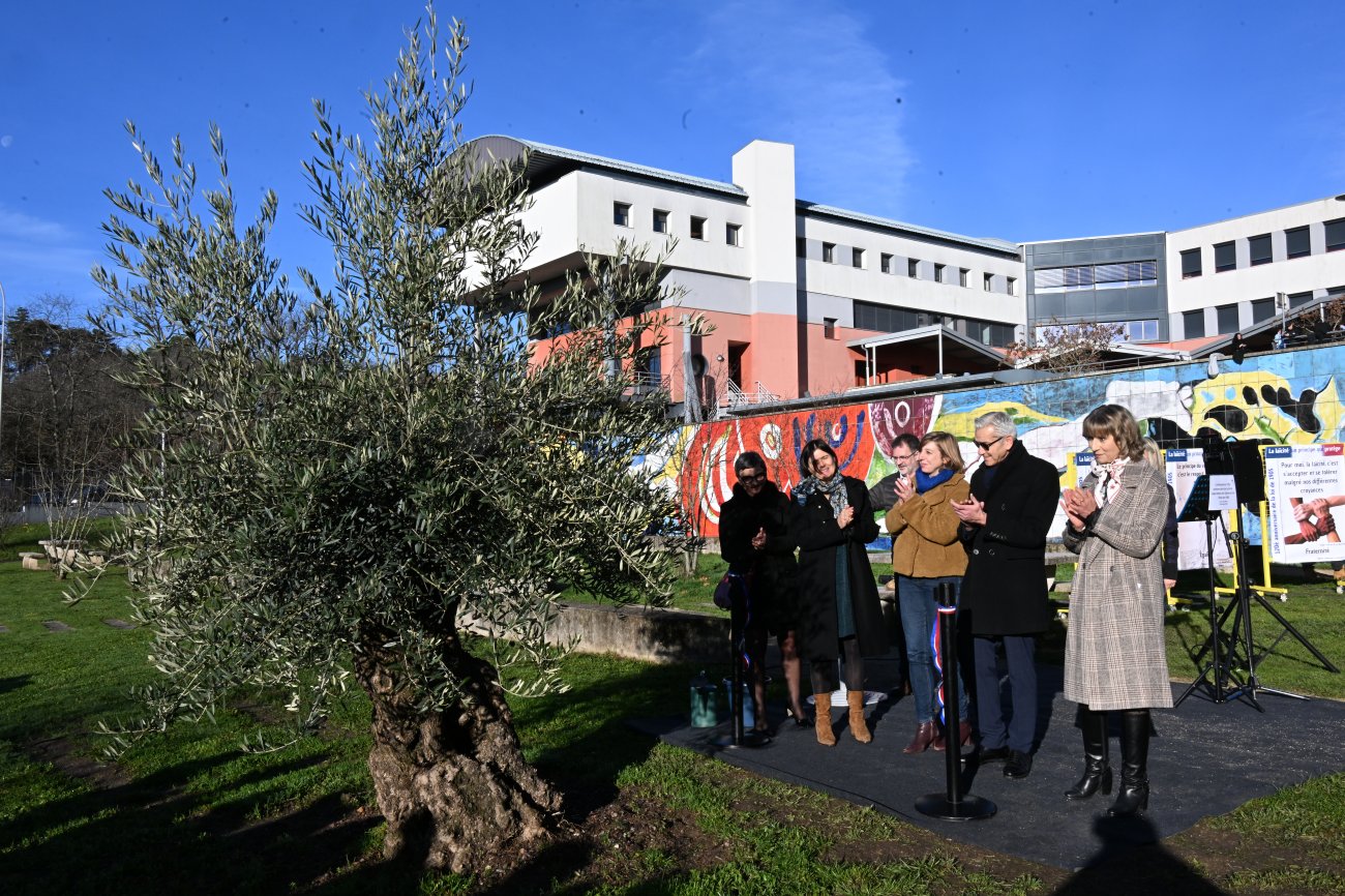 Je rappelle que l’olivier, dont nous inaugurons la plantation, est un arbre de paix. Ses feuilles portent l’esprit de la laïcité. Oui c’est ici que commence l’avenir. Ayons aussi une pensée pour Samuel Paty et Dominique Bernard».