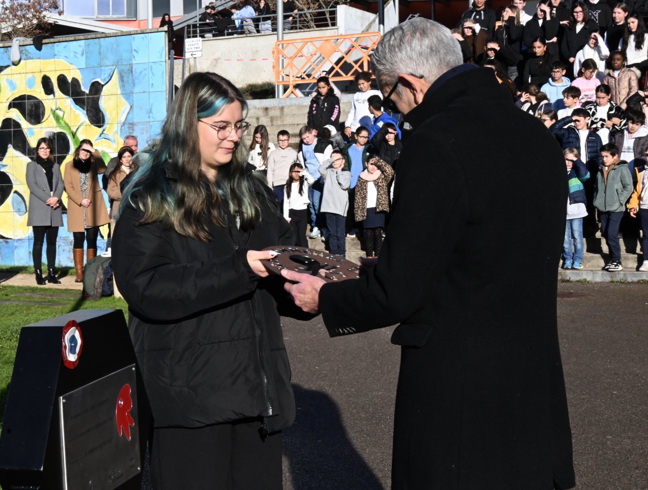 Au cours d’une très belle cérémonie, qui s’est déroulée en présence de la Rectrice d’Académie, on a évidemment beaucoup parlé de laïcité et de tout ce qu’elle porte. Des élèves de Victor Hugo ont eux déposé des messages qui seront lus en 2032