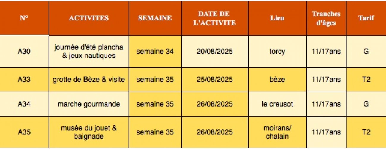 La Ville du Creusot propose comme tous les ans de nombreuses possibilités d’activités pour tous les âges, toutes les envies… durant cette période : ALSH LA Lande aux Loisirs, activités jeunesse, médiathèque, sports à la carte, Maison des parents, Centre social.