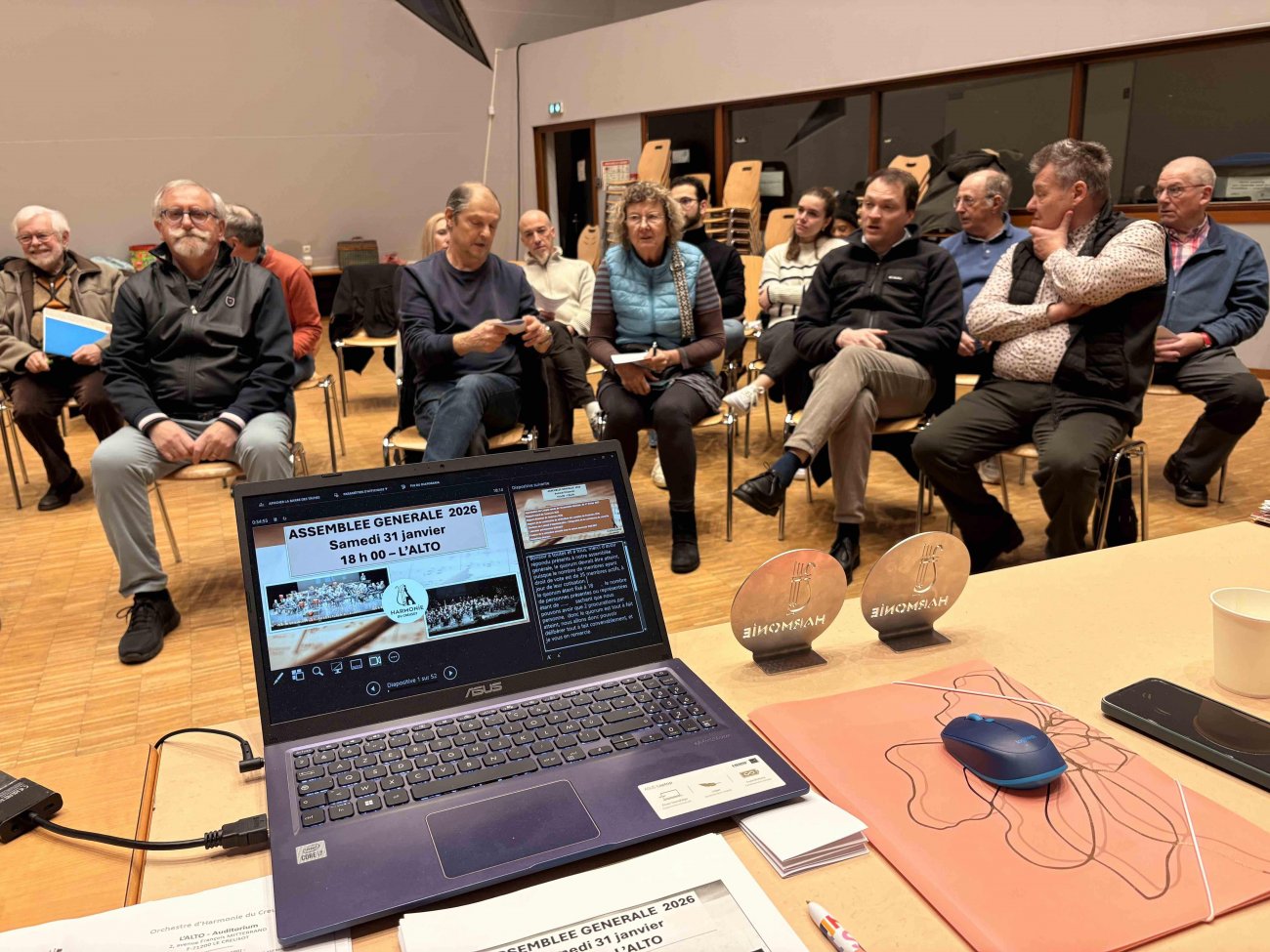 Samedi après-midi, ce n’est pas pour une répétition que les musiciens de l’Harmonie du Creusot se sont retrouvés à 18H00 dans l’auditorium de l’Alto, comme ils le font habituellement tous les vendredis soir, sous la Direction de leur cheffe d’orchestre Lydiane CURT-PITOU. Ils avaient répondu à l’invitation de leur Présidente, Céline CARTON-PETRAZ, pour tenir la 54ème assemblée générale ordinaire de l’association, et la 11ème sous sa présidence.