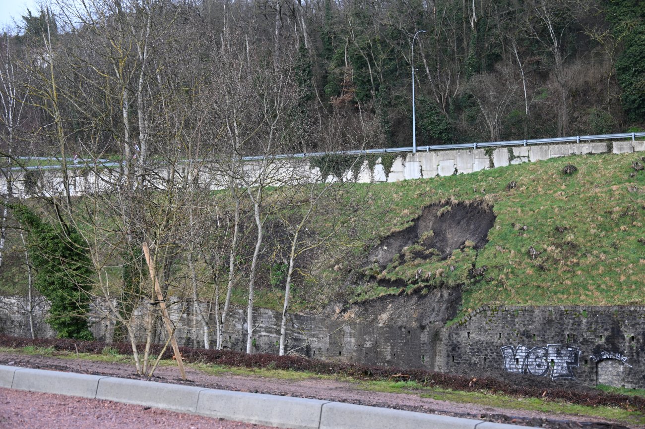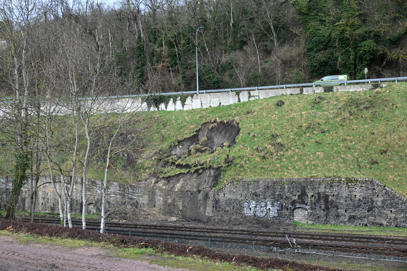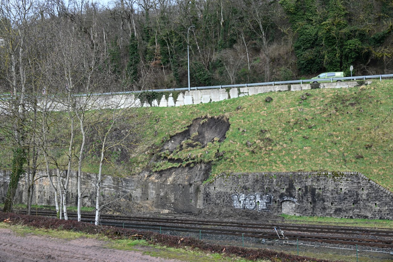 L’effondrement constaté se situe sous la rue Chaptal, entre le Tunnel et la gare SNCF. Selon une estimation, ce sont déjà plusieurs mètres cube de terre qui se sont détachés. S’il n’y a pas encore de péril pour les trains, ni pour la rue Chaptal, ni pour la circulation, il va quand même falloir intervenir avant que les effondrements deviennent trop importants. Le talus se situe sur l’emprise de la SNCF.