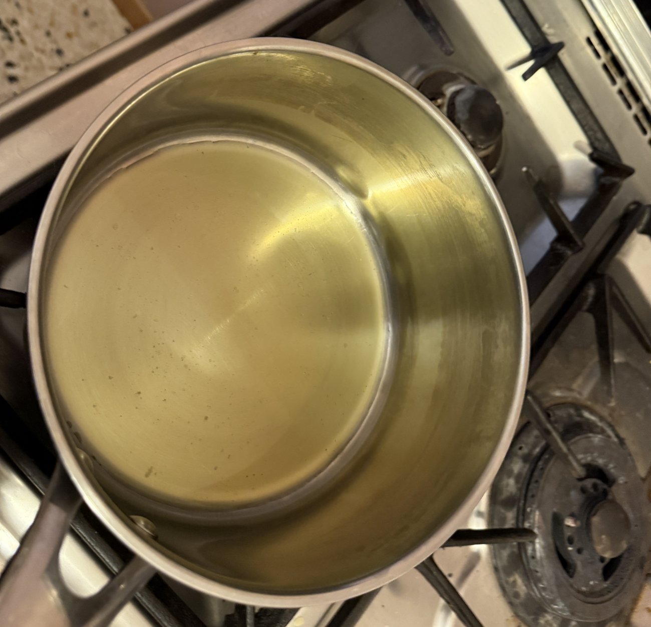 Commencez par mettre un peu d’huile d’olive dans le fond d’une casserole. Dans une autre vous faites cuire vos pâtes avec un petit filet d’huile d’olive, sans oublier de saler l’eau.