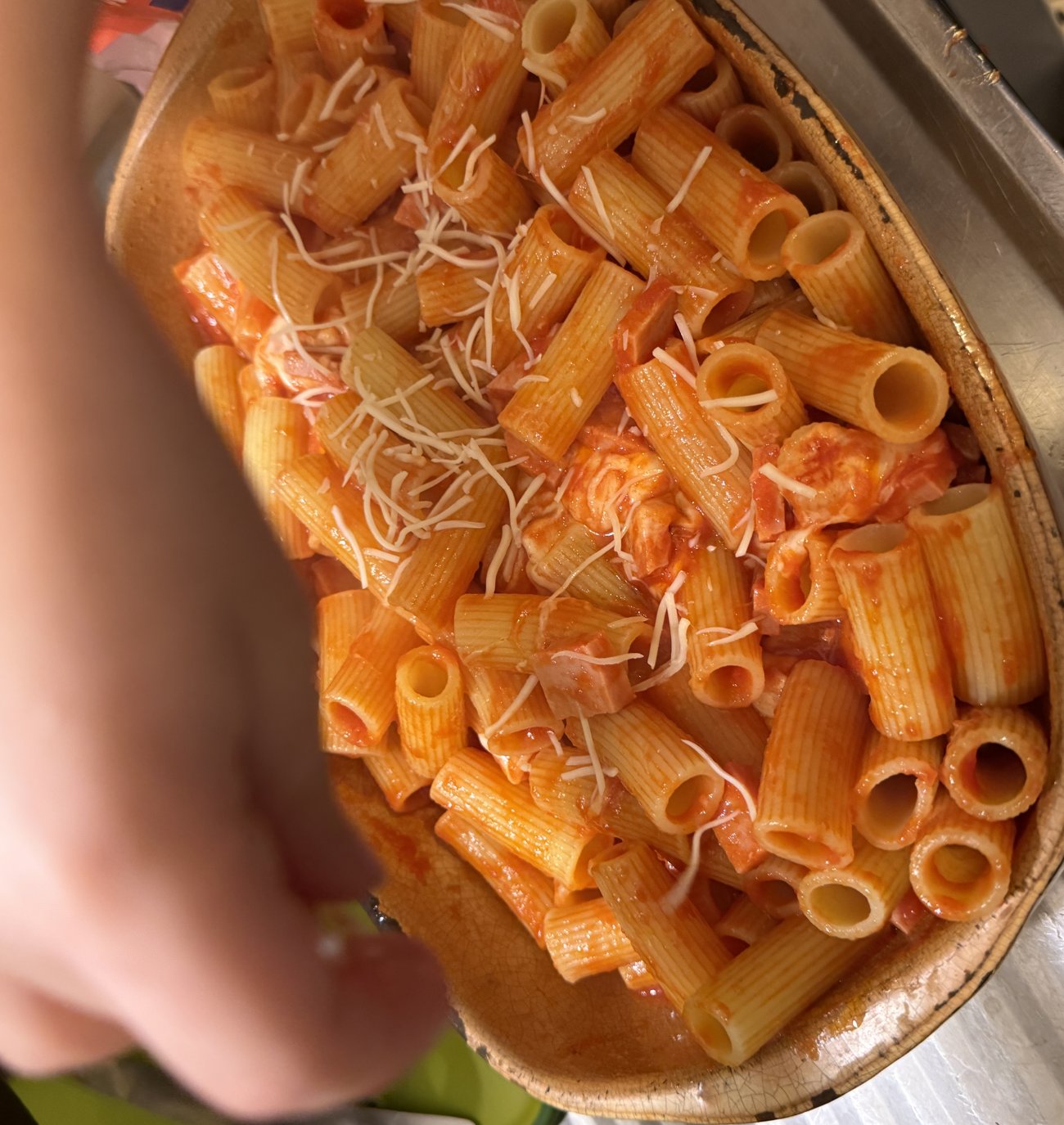 Vous mettez alors celles-ci dans un grand plat à gratin et vous les recouvrez avec la sauce tomate agrémentée de Mortardelle et de Scarmorza. Mélangez le tout ! Vous pouvez ajouter un peu d’emmental rapé avant de passer dix minutes maxi sous le grill d’un four. Vos enfants vont adorer, mais pas que… Un bon plat rapide à réaliser et pas trop cher. Si vous aimez ce qui est relevé, vous pouvez ajouter un peu de poudre de piment à convenance.