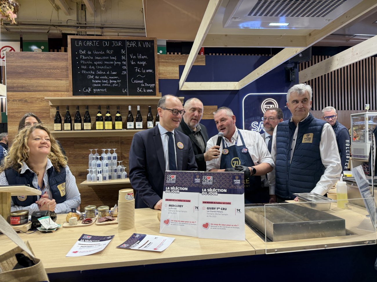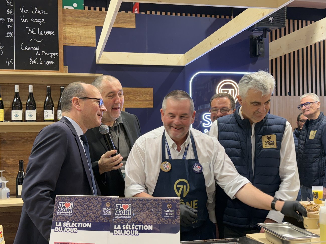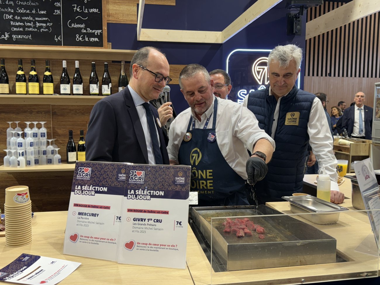 A côté de toutes ces GG, Sébastien Martin faisait figure de sage. Le Ministre de l’Industrie est venu saluer André Accary, ses anciens amis élus, mais aussi les agriculteurs de Saône-et-Loire. Il s’est même permis, avec le Président Accary, de faire griller un peu de viande charolaise.