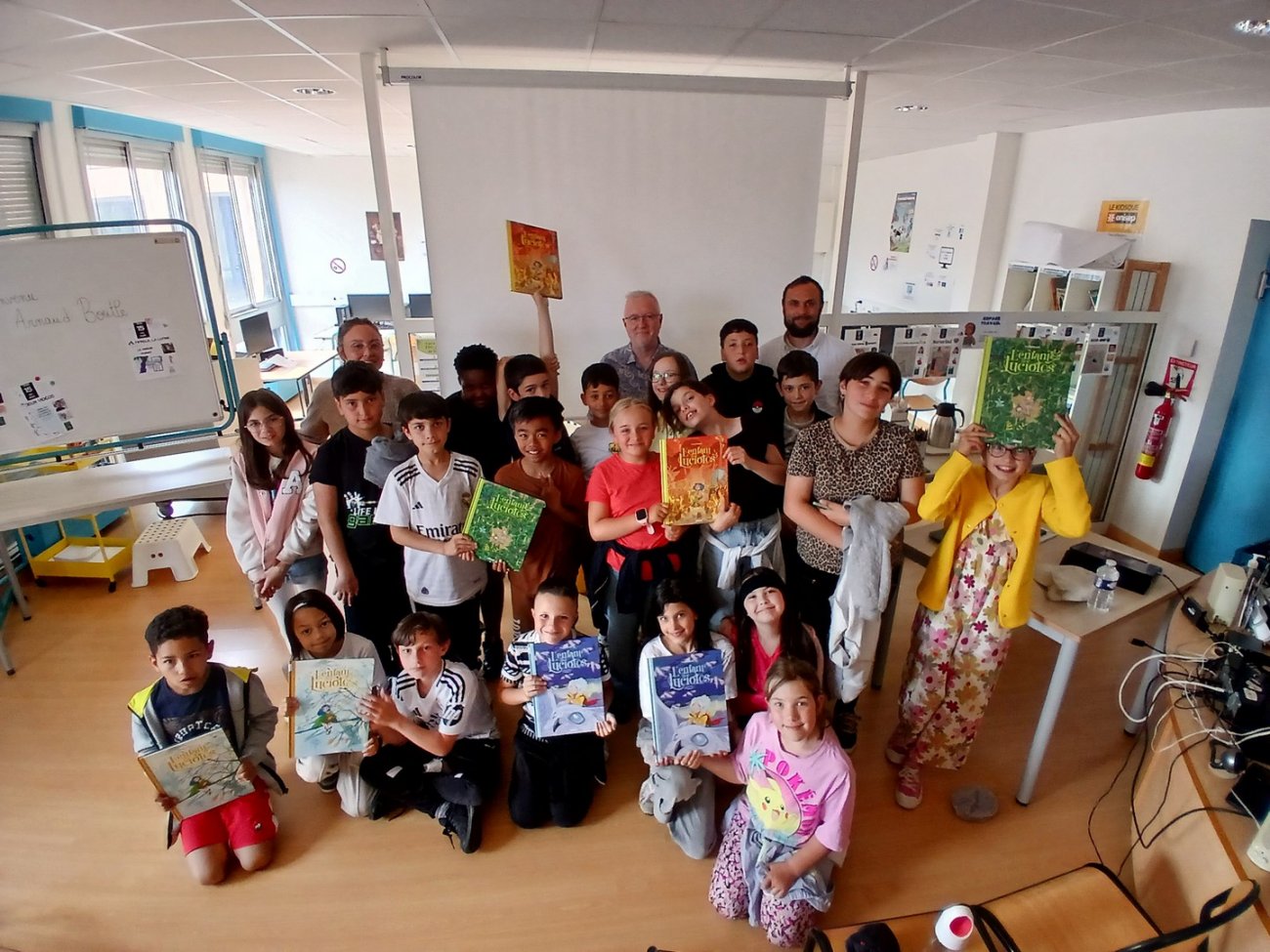 Ce lundi 19 et mardi 20 mai, les CM1-CM2 des écoles Rosa Parks, Champ Cordet, Champ Bâtard ainsi que 2 groupes de 6e du collège Les Epontots ont eu la chance de rencontrer Arnaud Boutle pour sa Bande dessinée « L'Enfant des Lucioles » Tome 1 Sécheresse de printemps, publiée chez Glénat.