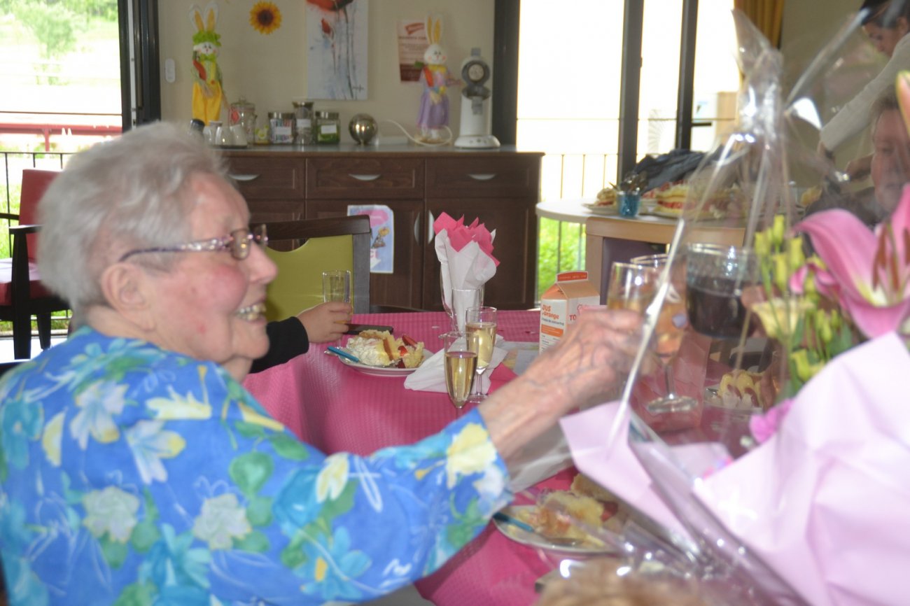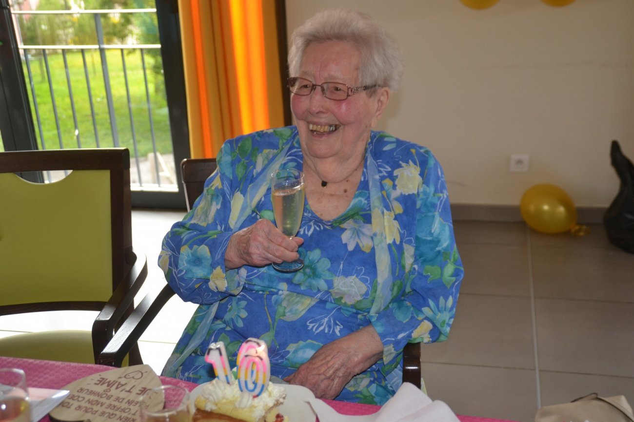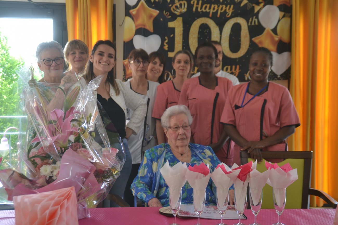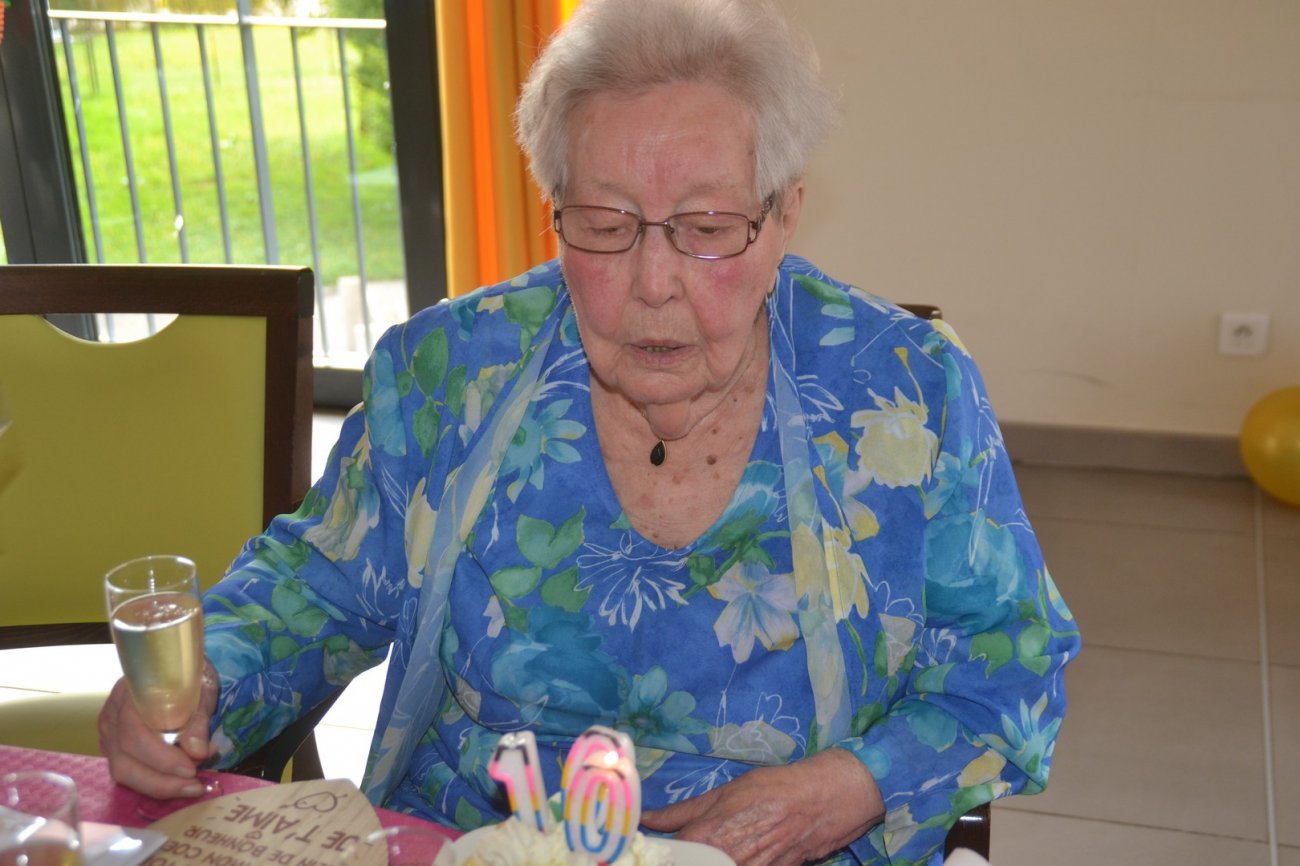 Elle les a fêtés mardi après-midi à l’EHPAD des Palains avec sa famille et le personnel.