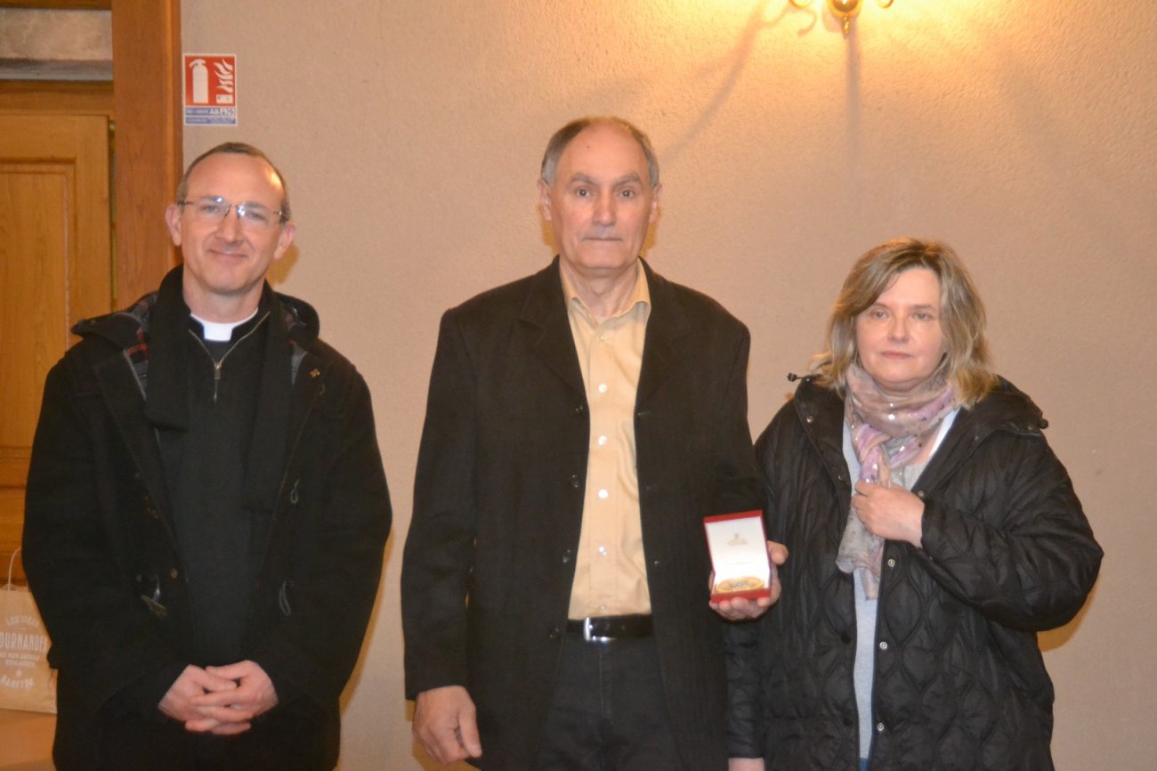 C’est là que François Chirico, s’est dit « Je vais voir ce que je peux faire ». Deux heures de travail et de patience par jour pendant trois semaines, c’est le tour de force qu’a réussi François Chirico pour reconstituer le « puzzle » et mener à bien son travail de restauration. Alors ce jeudi il était bien normal que l’ancien chaudronnier soit mis à l’honneur par la Municipalité. Le maire Thierry Buisson lui a donc remis la Médaille d’Honneur de la Ville et quelques ouvrages sur l’histoire locale ainsi qu’un superbe bouquet de fleurs à madame Chirico. C’est un bon bricoleur, il est adroit de ses mains et très patient, nous a-t-elle confié.