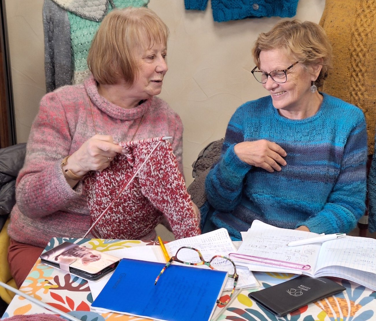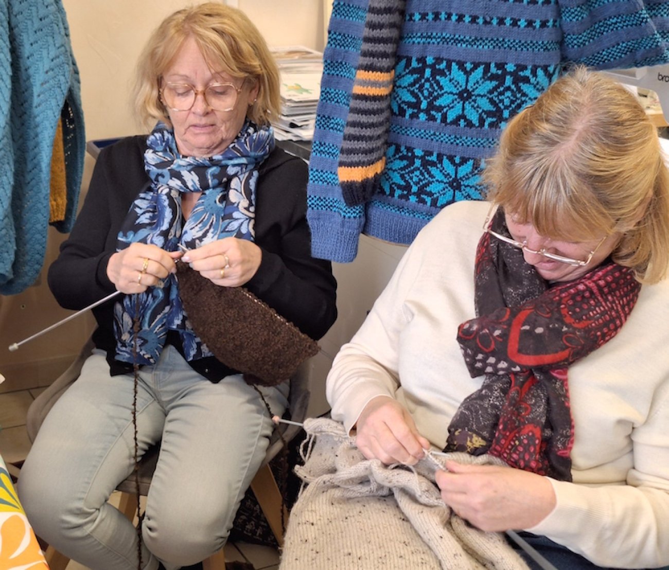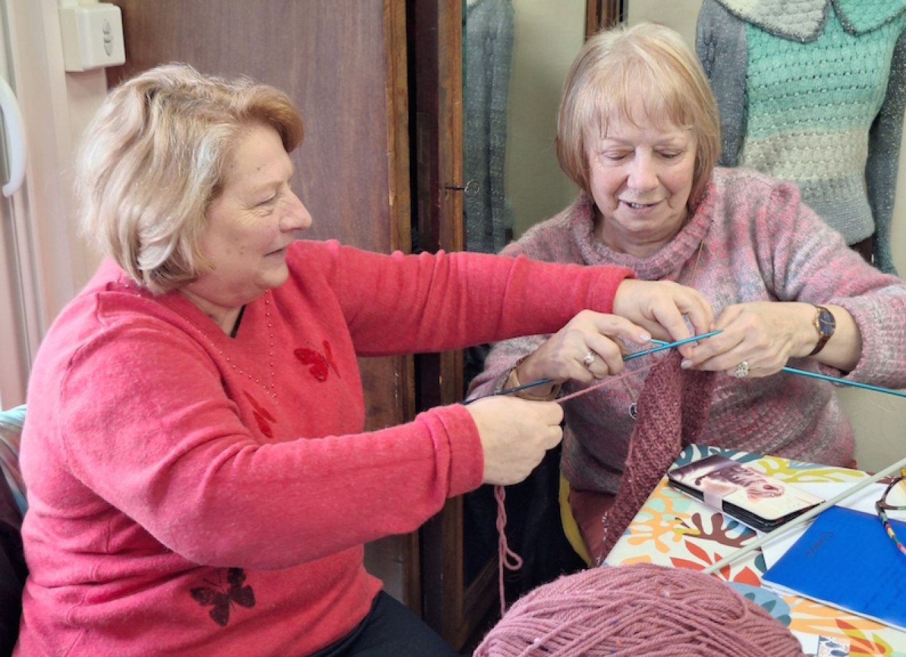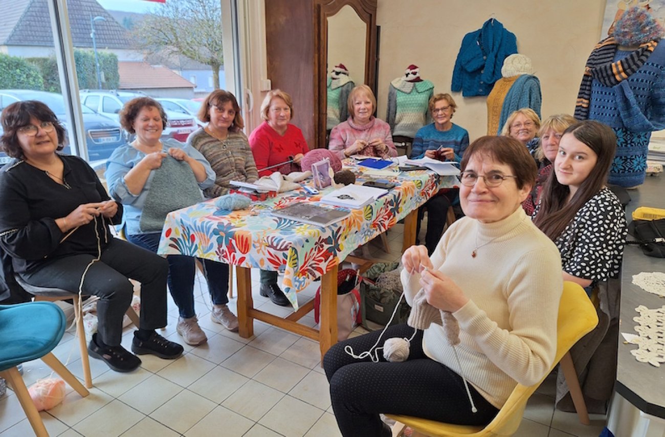 Elles viennent de toute la région pour tricoter joyeusement au magasin et disent adorer se retrouver en groupe.