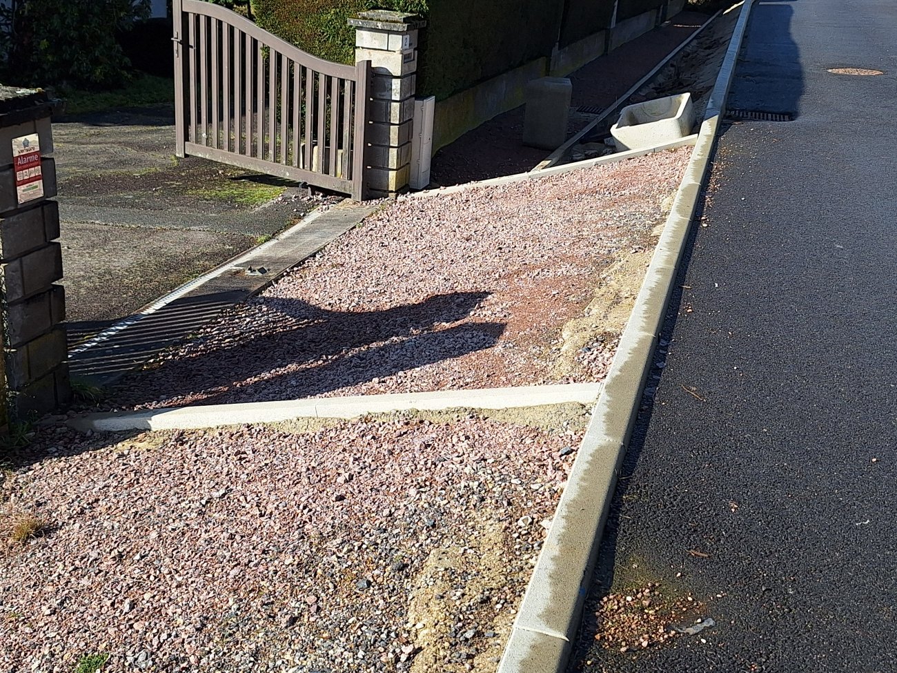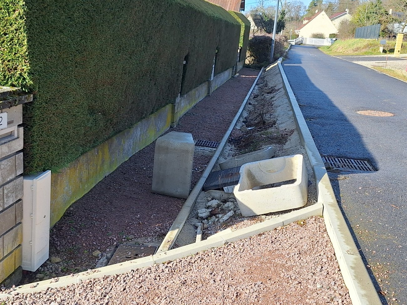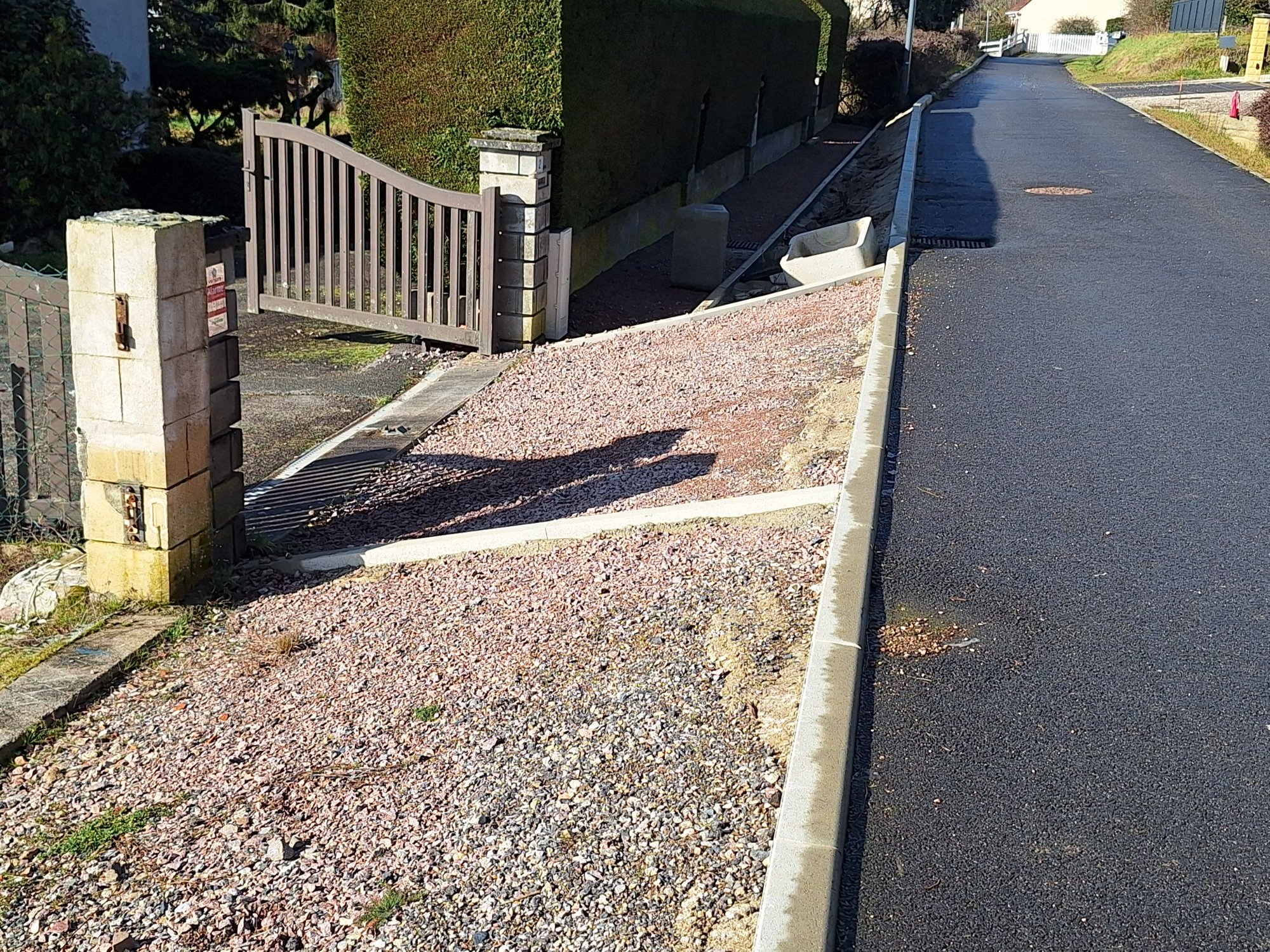 Selon elle, les travaux de réfection de la voirie (surélevée désormais de plusieurs dizaines de centimètres) réalisés par la Colas pour le compte de la Communauté Urbaine Creusot Montceau en octobre 2024 ne sont pas achevés et surtout pas conformes à ce qu’elle attendait.