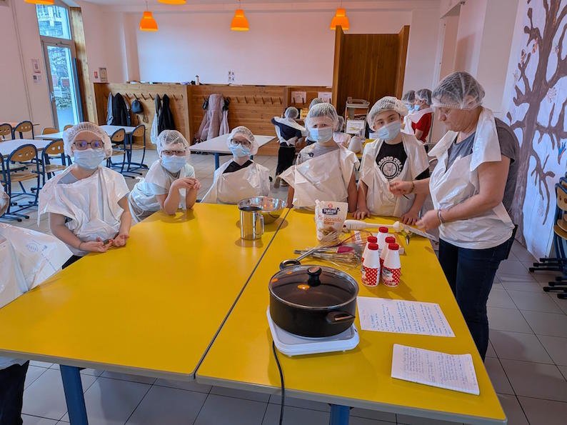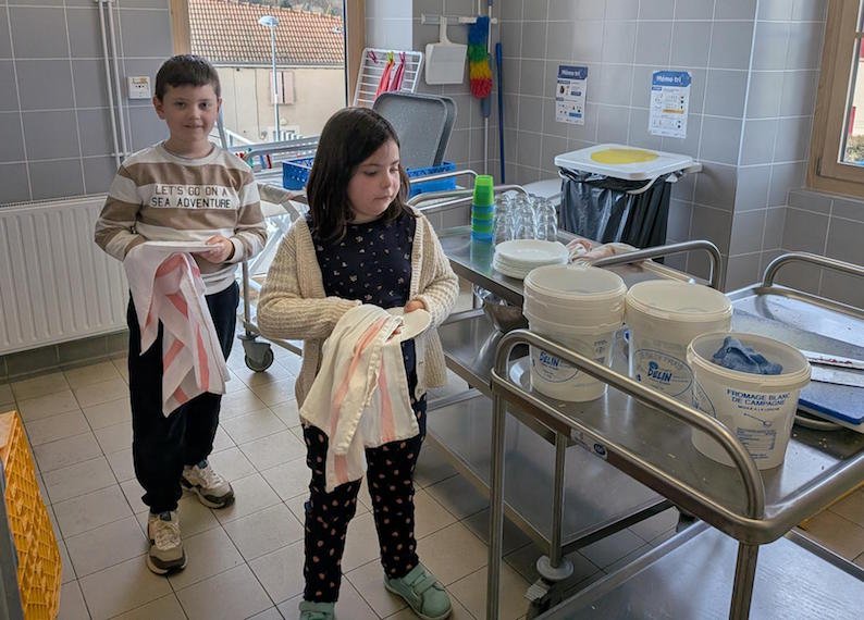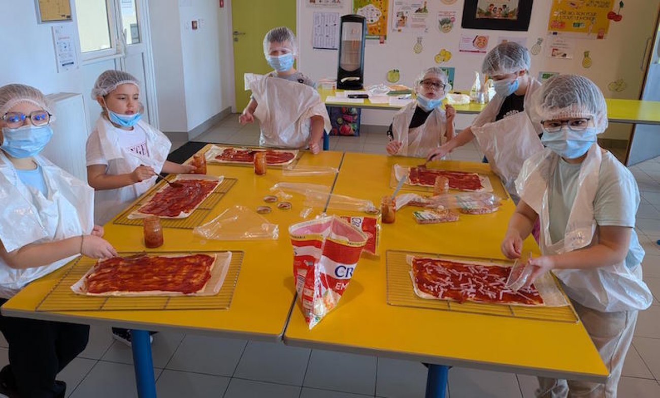 Pour l’occasion, ils ont participé à la réalisation complète du repas de la journée : apéritif (brochettes tomate-mozzarella), entrée (salade de carottes et maïs à la sauce alsacienne), plat (pizza jambon-fromage) et dessert (panna cotta et coulis de framboises). Mais leur mission ne s’arrêtait pas là ! Les enfants ont également pris part à toutes les étapes du fonctionnement d’un restaurant : mise en place, service à table, plonge et nettoyage de la salle du restaurant des enfants.