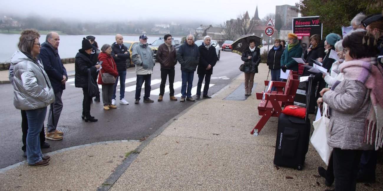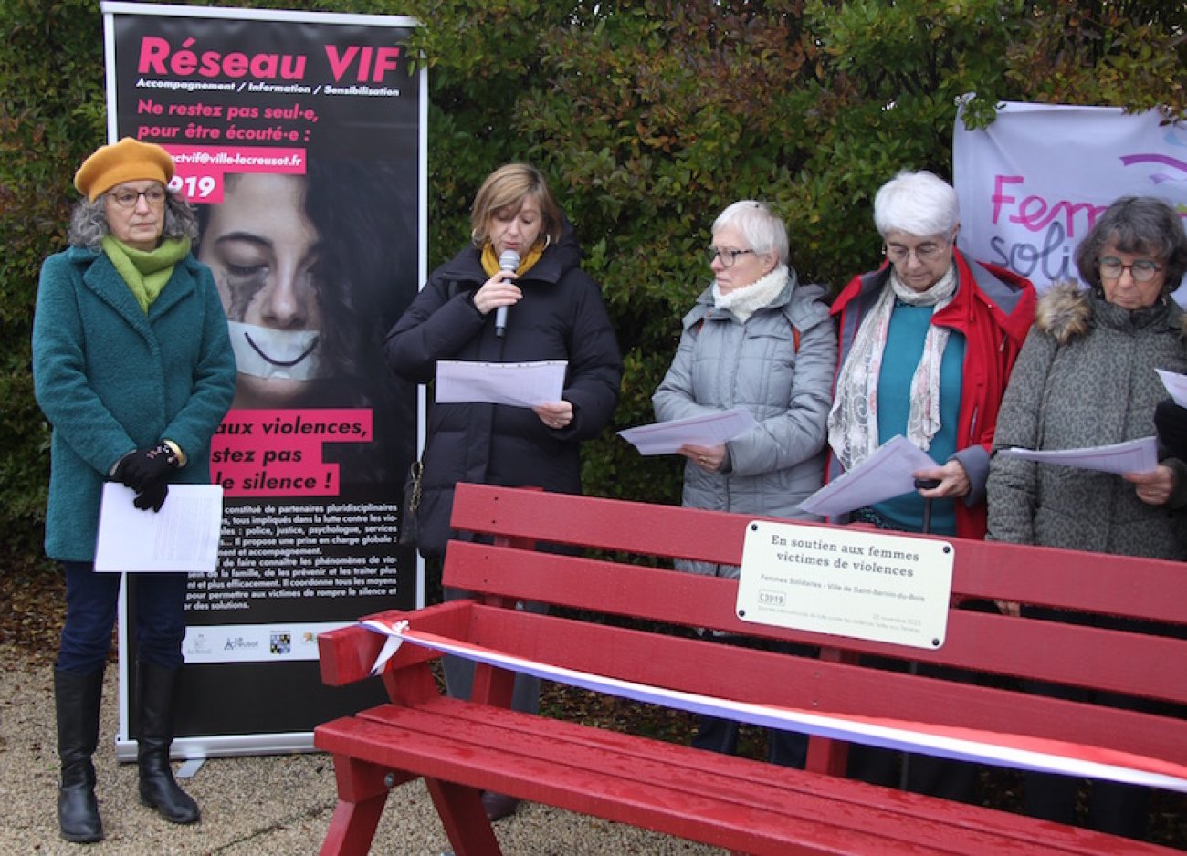 «L’installation de ce banc se veut être un hommage à toutes ces femmes tuées par un conjoint ou ex-conjoint. C’est est un symbole fort, rouge comme le sang. Mais au delà du symbole et de l’hommage, nous voulons que ce banc soit un lieu d’échanges, de paroles et donc de prévention. Il nous rappelle que derrière chaque porte peut se cacher une femme en danger…». Sur 107 femmes victimes en 2024, 47% étaient des victimes de violences et moins d’1/3 avait déposé plainte. Des soutiens existent. Aussi la maire du village n’a pas oublié de citer le travail mené par le réseau VIF du Creusot, réseau de lutte contre les violences intrafamiliales auquel tout le monde peut faire appel.